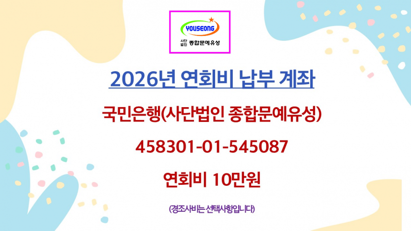 (사)종합문예유성 2026 연회비 납부 안내